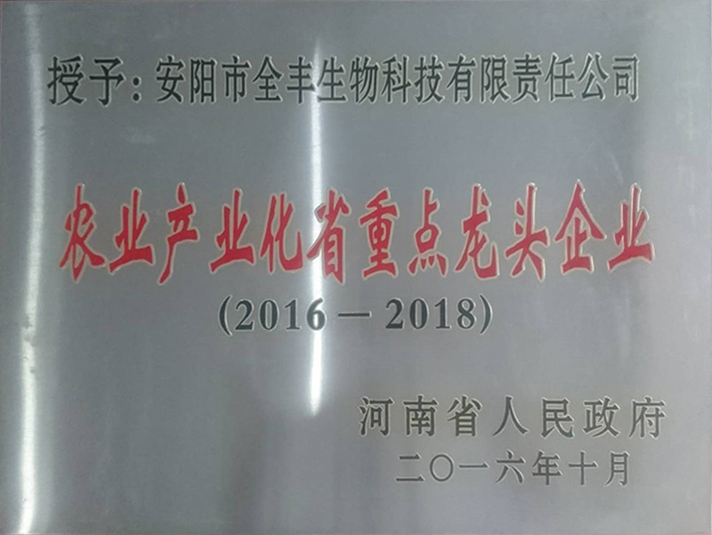 榮獲2016年-2018年“農業(yè)產(chǎn)業(yè)化省重 點(diǎn)龍頭企業(yè)”