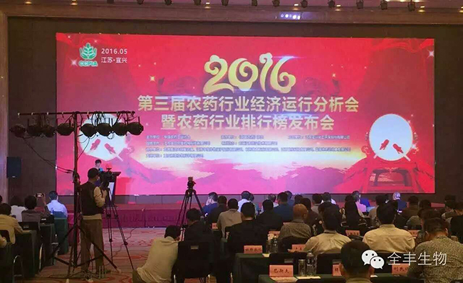 2016年5月11日,第三屆農藥行業(yè)經(jīng)濟運行分析會(huì )暨農藥行業(yè)排行榜發(fā)布會(huì )在江蘇省宜興市成功召開(kāi)。