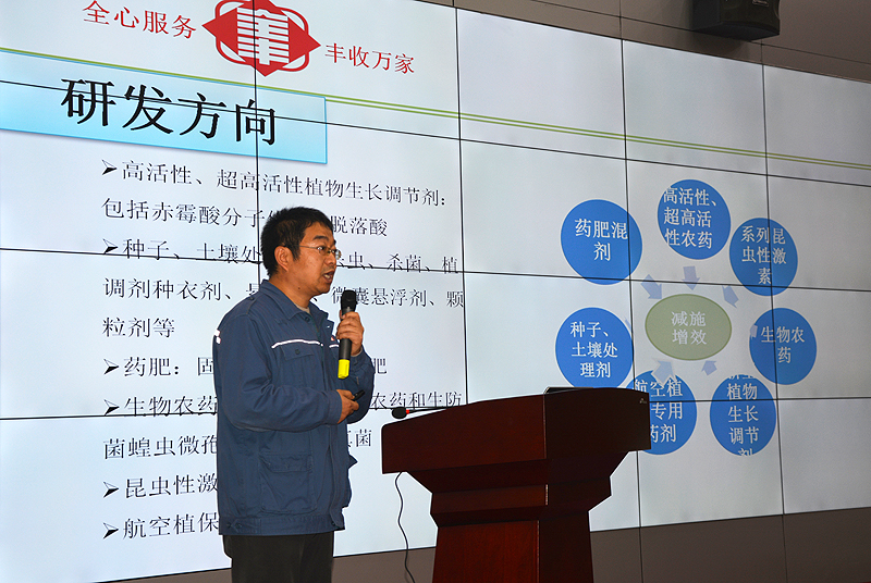全豐生物研發(fā)中心主任徐雪松,就安陽(yáng)全豐產(chǎn)品的發(fā)展歷程、產(chǎn)品分類(lèi)、登記情況及新的研發(fā)方向等內容作了介紹。