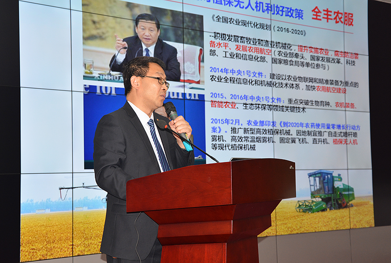 安陽(yáng)全豐航空植??偨?jīng)理周?chē)鴱?,做了《淺談我國植保無(wú)人機的現狀與應用》主題匯報,系統介紹了我國航空植保產(chǎn)業(yè)的發(fā)展現狀、植保無(wú)人機的應用情況、以及對我國航空植保行業(yè)發(fā)展前景的展望。