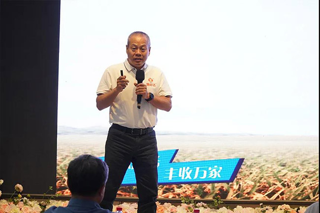 安陽(yáng)市喜滿(mǎn)地肥業(yè)有限責任公司董事長(cháng)崔俊儀分享了“優(yōu)質(zhì)稻用肥管理要點(diǎn)”。