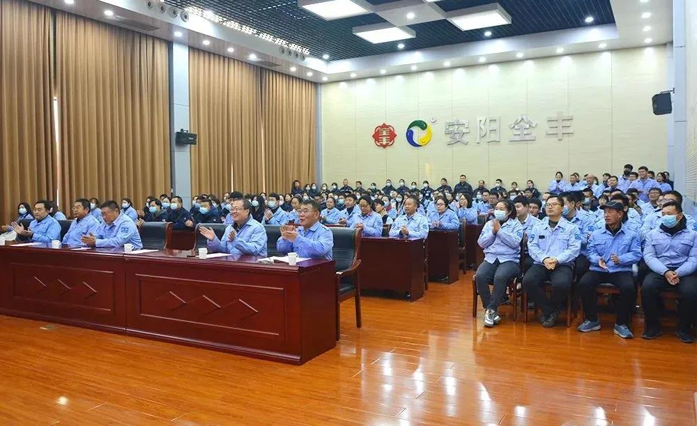 11月27日上午八點(diǎn)半,在航空大會(huì )議室,安陽(yáng)全豐員工代表齊聚一堂,齊聲為全豐生日獻上一曲生日祝福歌。董事長(cháng)、總經(jīng)理王志國發(fā)表致辭,在這個(gè)特殊的日子里,他代表公司向每一位全豐家人表示衷心感謝!過(guò)去艱苦創(chuàng )業(yè)我們一起攜手走過(guò),現在發(fā)展路上我們并肩共奮斗,未來(lái)幸福生活我們一定會(huì )實(shí)現!
